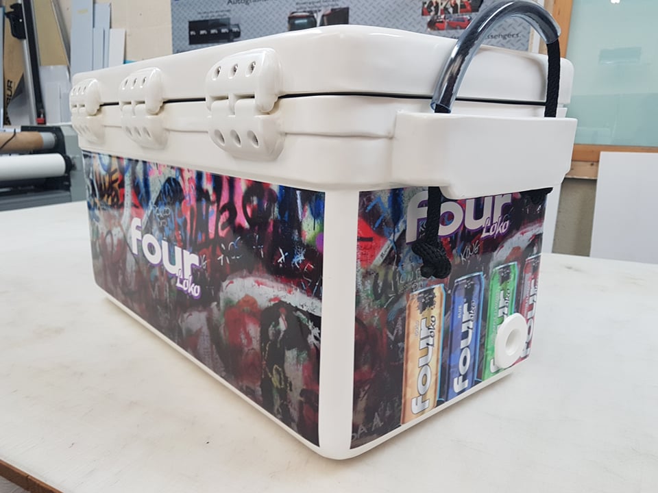 Graphics are applied to Icey-Tek Cool Boxes using high quality UV protected vinyl.